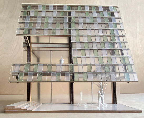 Det eksisterende hus på Kulturgrunden – et tidligere møbelpolsterværksted, der i dag fungerer som galleri – skal rives ned for at give plads til det nye byggeri. Men dele af det gamle hus vil leve videre, blandt andet som genbrugsmursten i det nye kulturhus.